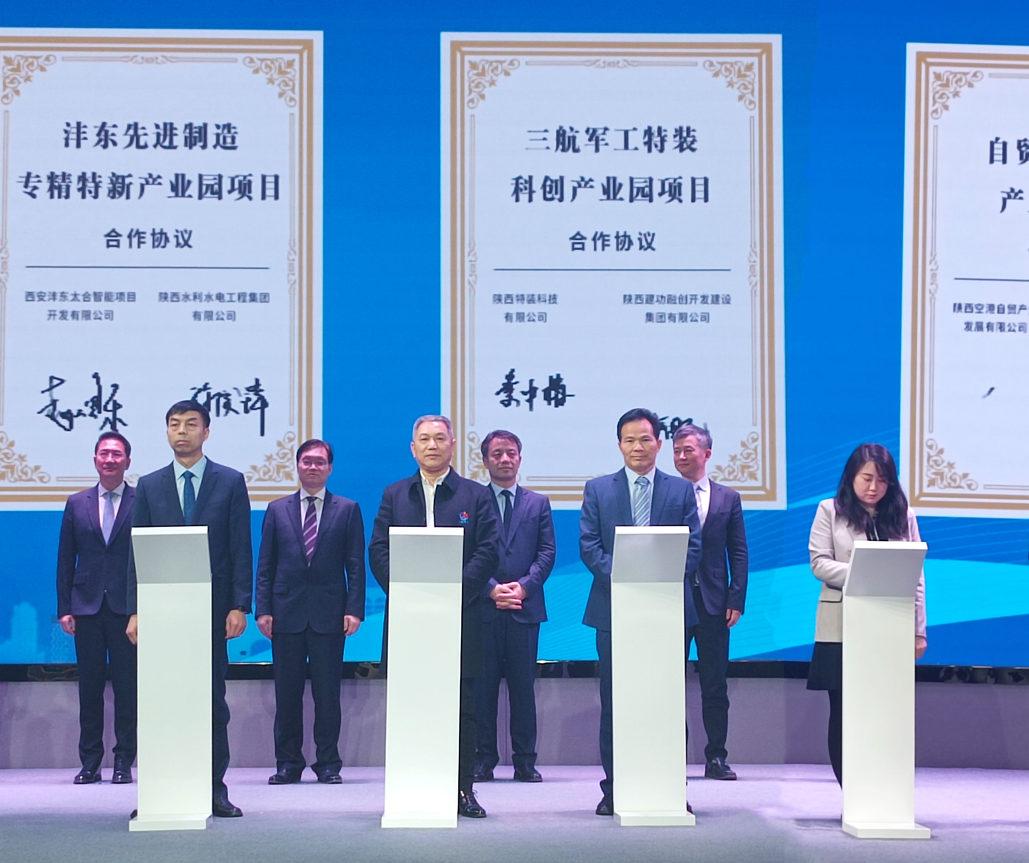 228下午,2023年高質(zhì)量項目推介大會在西鹹會議中(zhōng)心舉辦(bàn)。由我集團投資的三航特裝(zhuāng)科(kē)創産(chǎn)業園項目作(zuò)為(wèi)西鹹新(xīn)區(qū)重點項目參加了本次推介大會。西鹹新(xīn)區(qū)黨工(gōng)委書記楊仁華、管委會主任姜建春等領導出席現場簽約儀式。